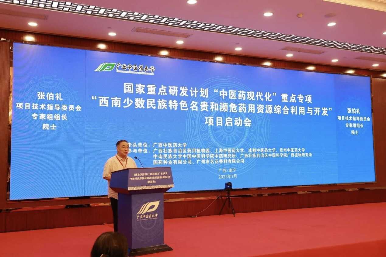 张伯礼院士在“西南少数民族特色名贵和濒危药用资源综合利用与开发”项目启动会上讲话。